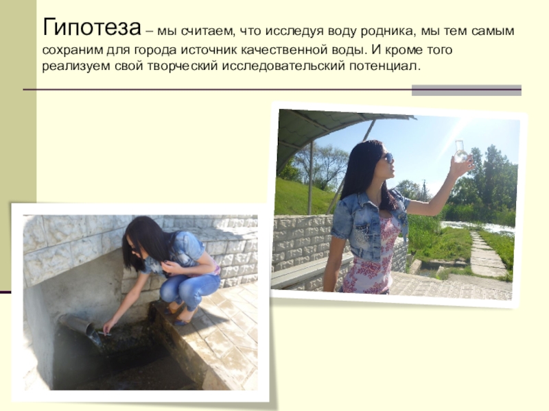 Слайд 17Гипотеза – мы считаем, что исследуя воду родника, мы тем самым