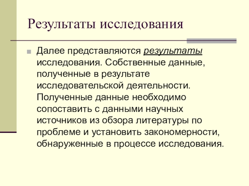 Далее представляются результаты исследования. Собственные данные, полученные в результате исследовательской
