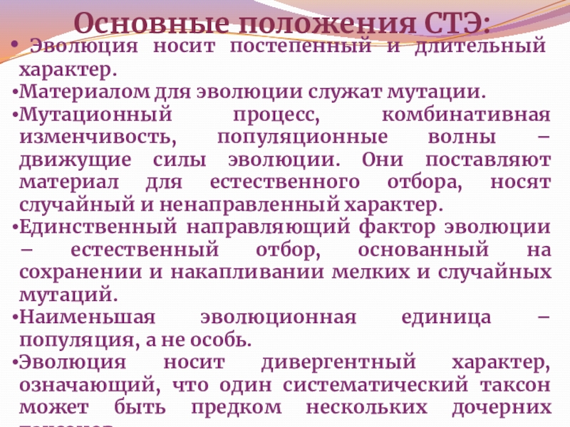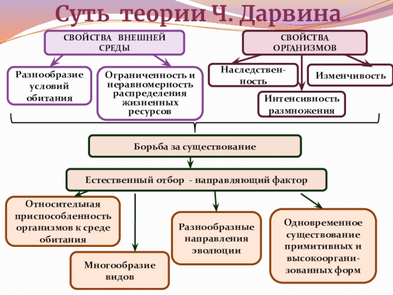 - Основные причины изменяемости видов заключаются в прямом влиянии на организмы условий окружающей среды.