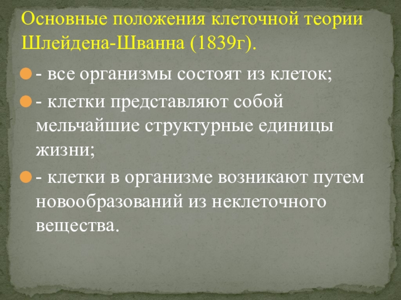Основные положения клеточной теории Шлейдена-Шванна (1839г).