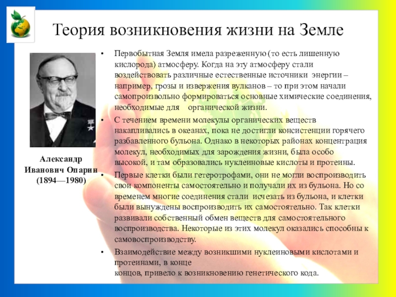 Стэнли Миллер американский ученый экспериментально проверил гипотезу Опарина и Холдейна. Воспроизвел в запаянной колбе первичную атмосферу Земли. Получил некоторые органические вещества, в том числе и несколько аминокислот