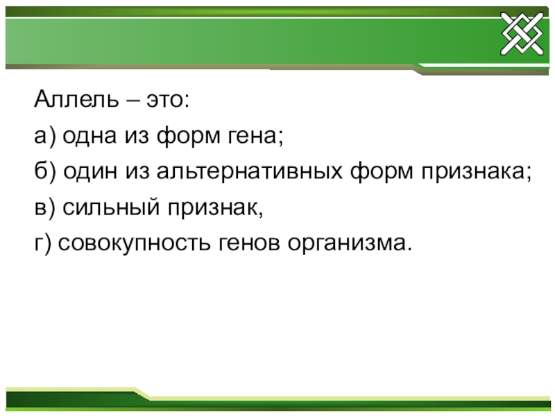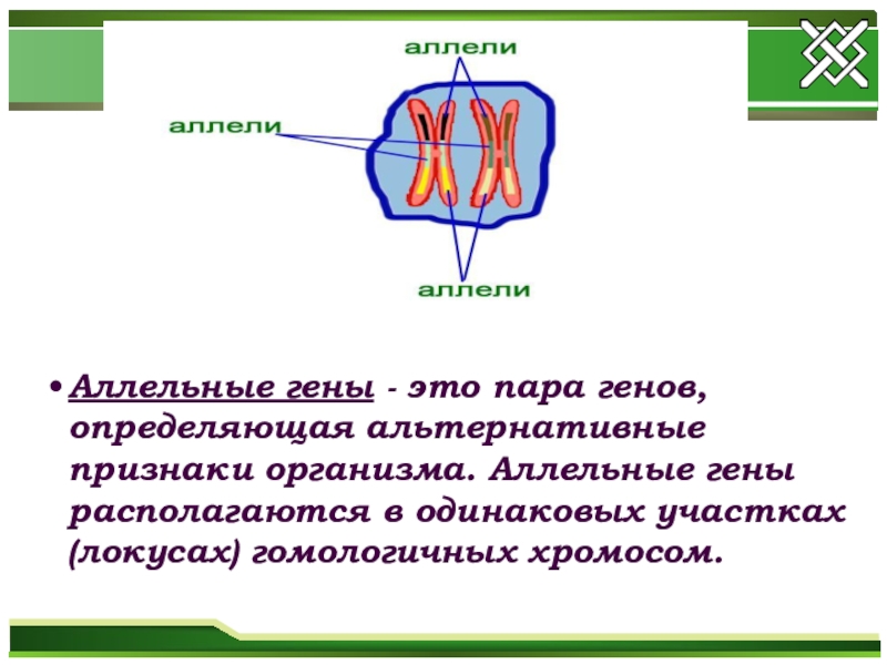 Аллельные гены - это пара генов, определяющая альтернативные признаки организма. Аллельные
