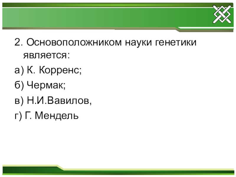 2. Основоположником науки генетики является: