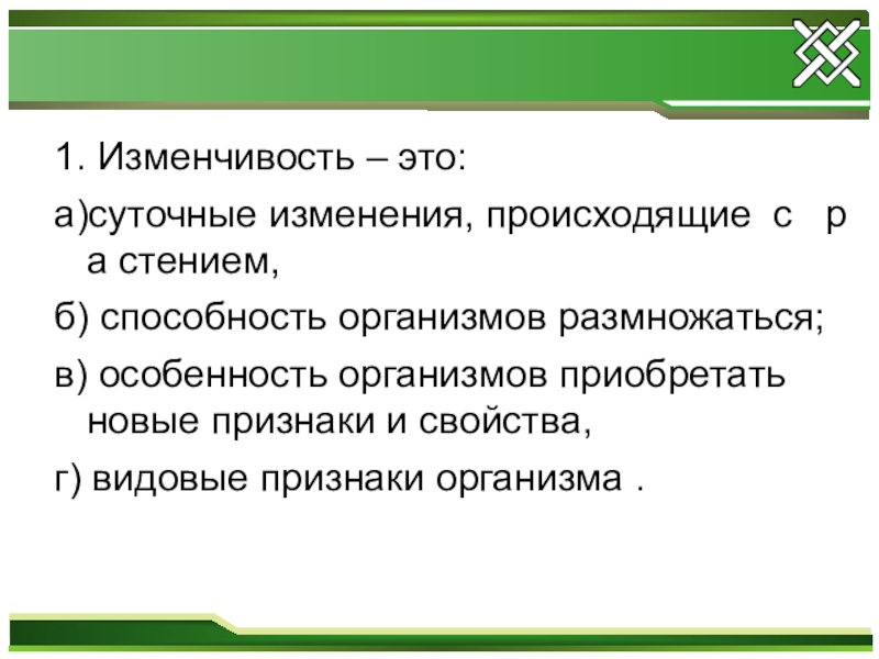 1. Изменчивость – это: