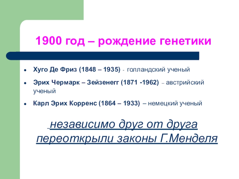 В 1906 году Уильям Бэтсон (1861 – 1926) – английский ученый, предложил термин «генетика» для обозначения новой науки