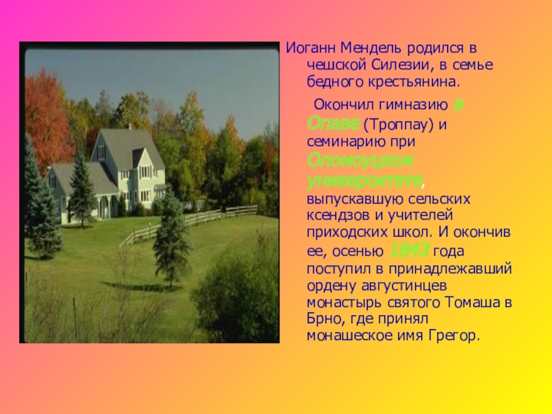 Иоганн Мендель родился в чешской Силезии, в семье бедного