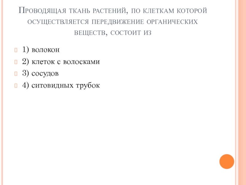 Слайд 3Проводящая ткань растений, по клеткам которой осуществляется передвижение органических веществ, состоит