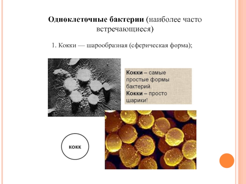 1. Кокки — шарообразная (сферическая форма);