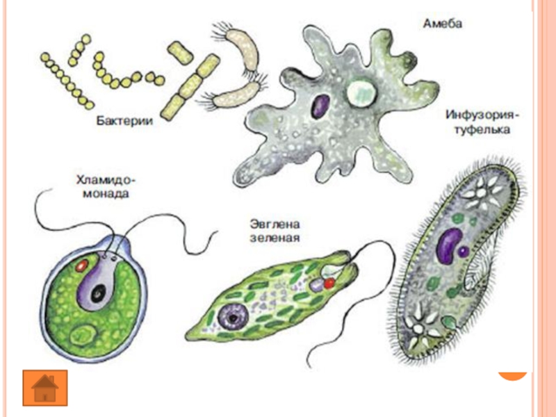 Эукариоты (амеба, эвглена зеленая, инфузория туфелька)