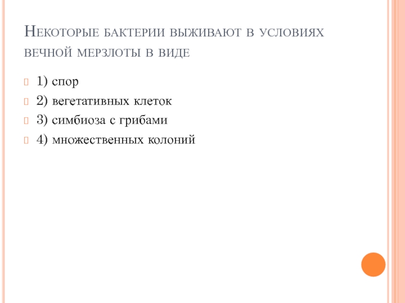 Слайд 35Некоторые бактерии выживают в условиях вечной мерзлоты в виде