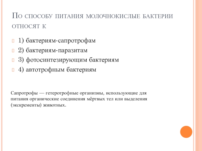 Слайд 42По способу питания молочнокислые бактерии относят к