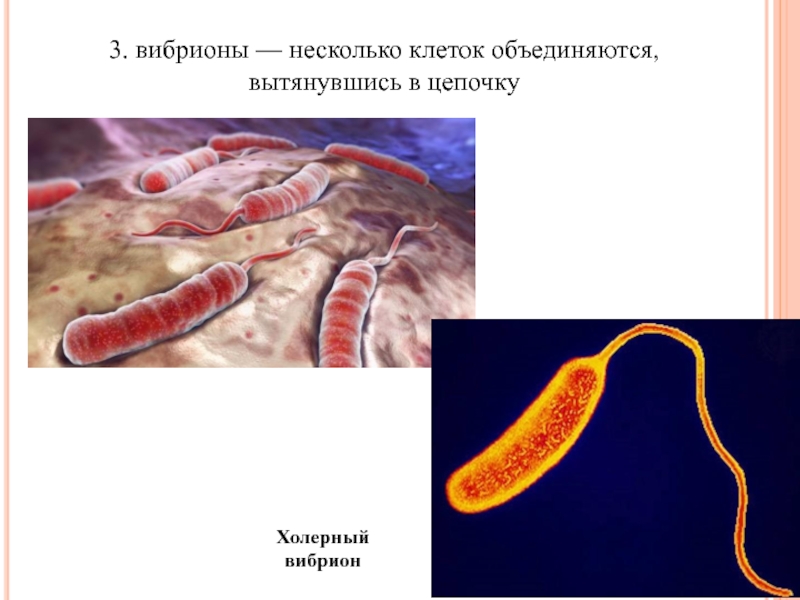 Слайд 213. вибрионы — несколько клеток объединяются, вытянувшись в цепочку