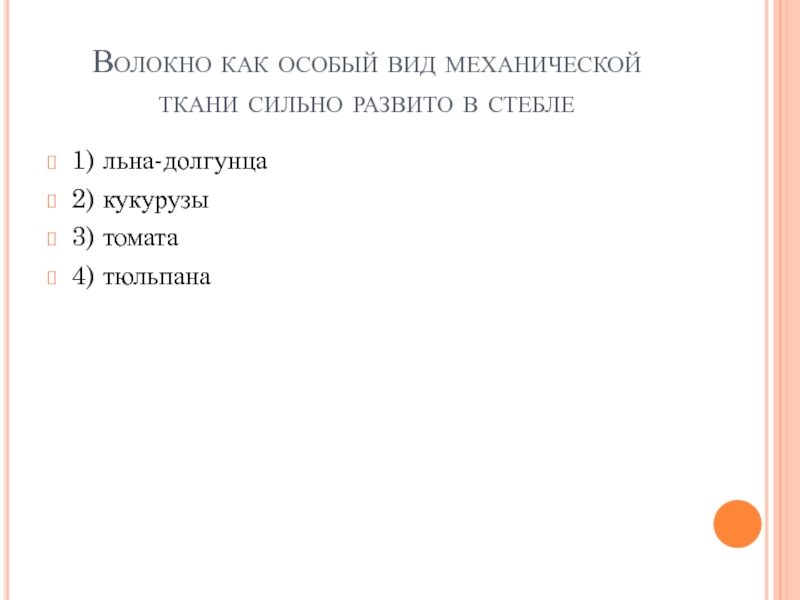 Слайд 4Волокно как особый вид механической ткани сильно развито в стебле
