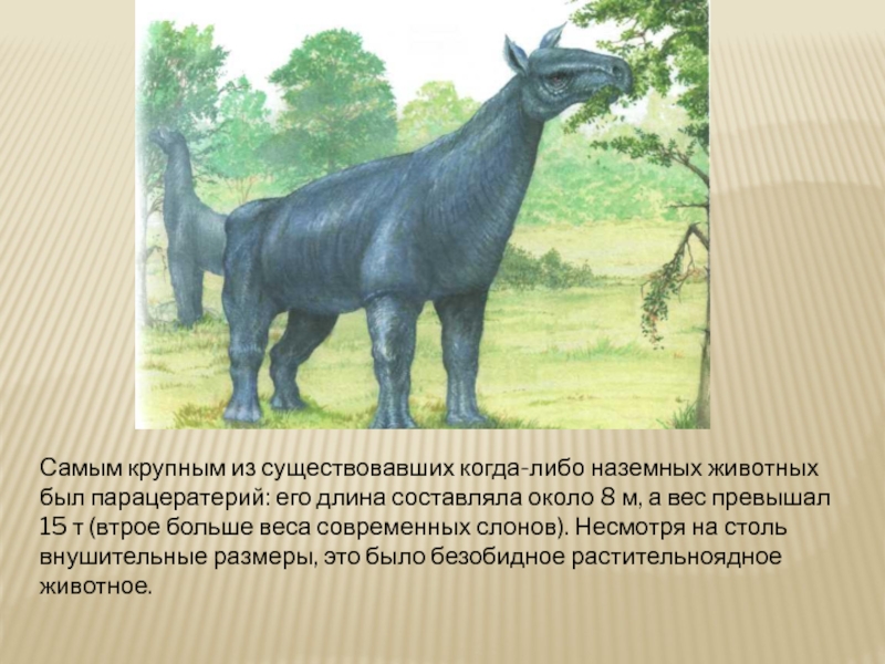 Слайд 15Самым крупным из существовавших когда-либо наземных животных был парацератерий: его длина