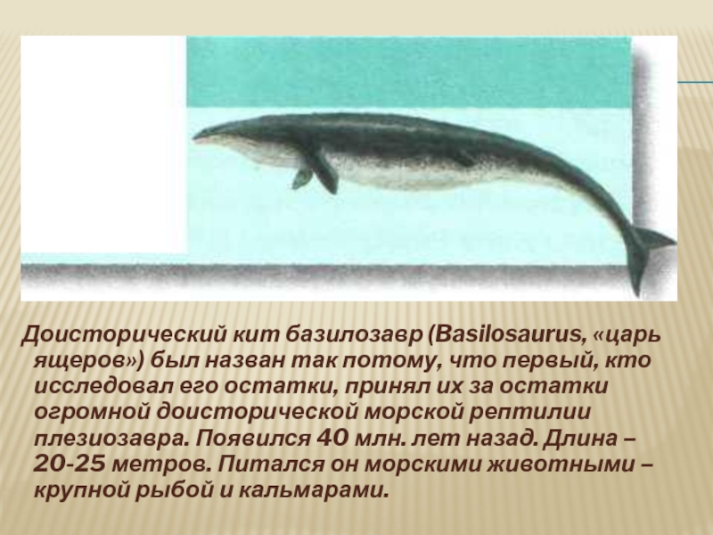 Слайд 25 Доисторический кит базилозавр (Basilosaurus, «царь ящеров») был назван так