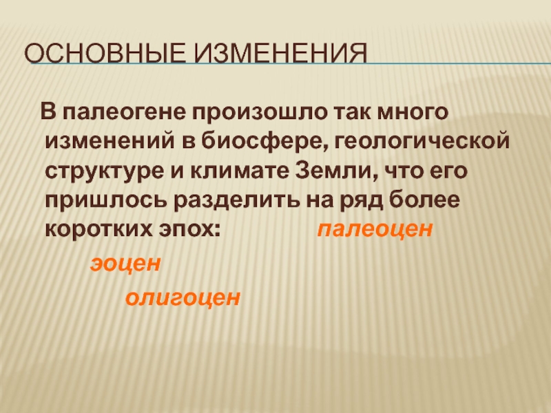 геологической структуре и климате Земли, что его пришлось разделить на ряд более коротких эпох: палеоцен