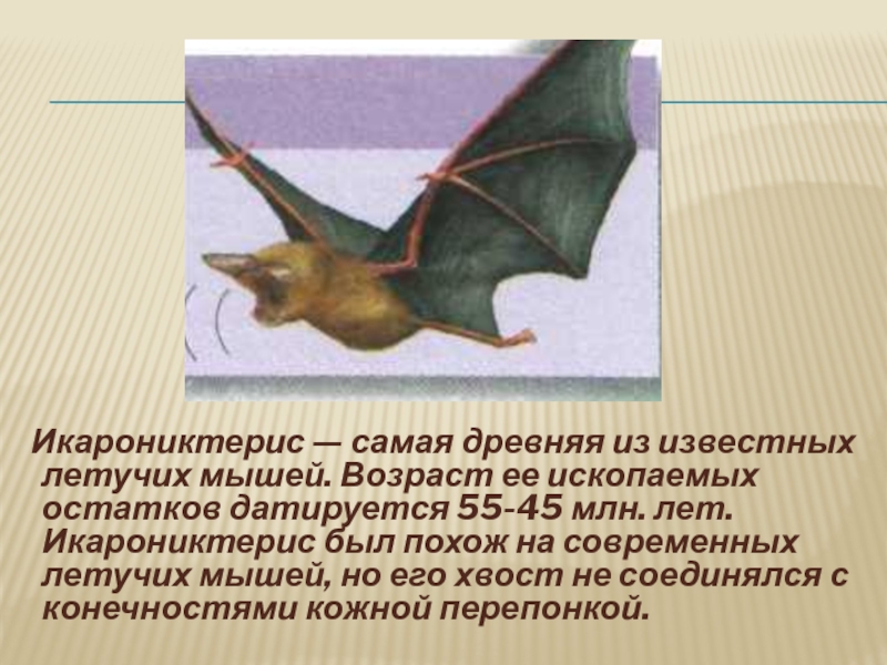 Слайд 26 Икарониктерис — самая древняя из известных летучих мышей. Возраст