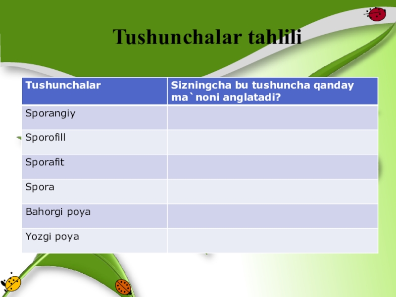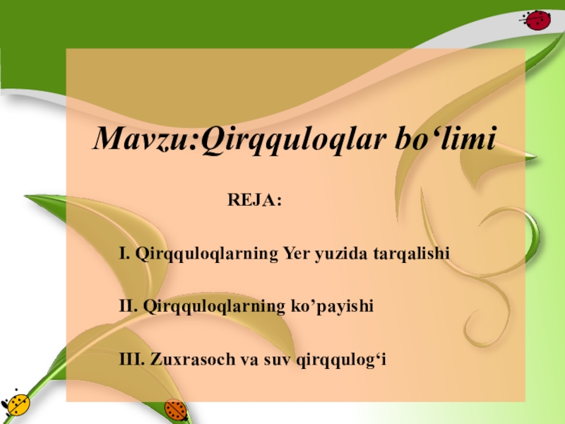 Презентация, доклад по биологии на тему кирккулоклар (5 класс на узбекском языке)