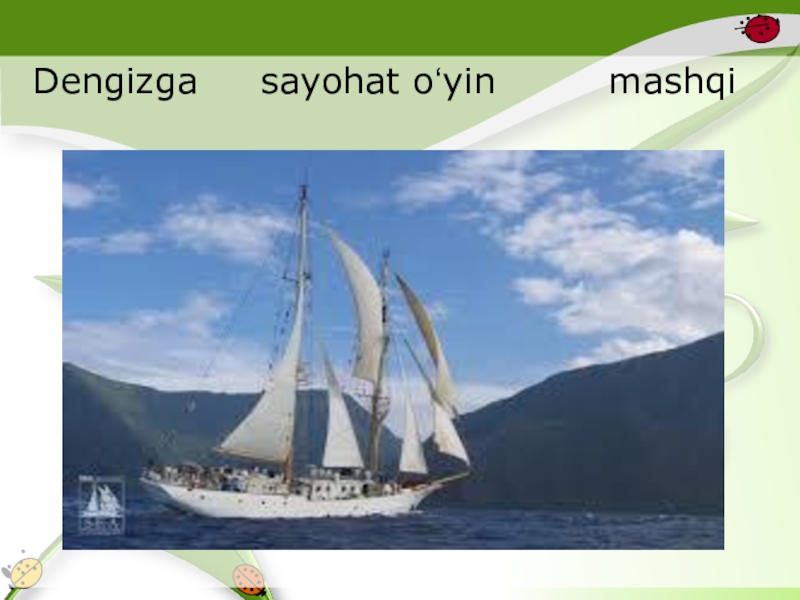 Слайд 12 Dengizga sayohat oʻyin mashqi