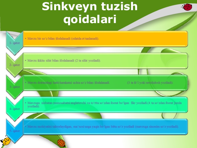 Слайд 5Sinkveyn tuzish qoidalari