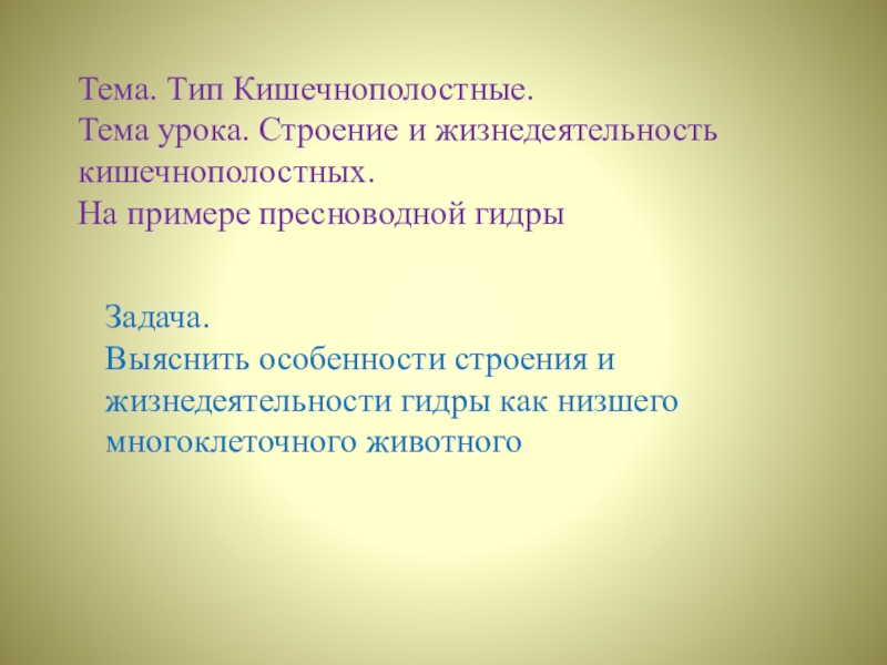 Выяснить особенности строения и жизнедеятельности гидры как низшего многоклеточного животного
