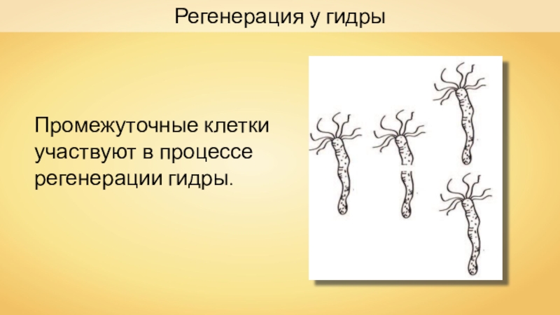 Регенерация у гидрыПромежуточные клетки участвуют в процессе регенерации гидры.