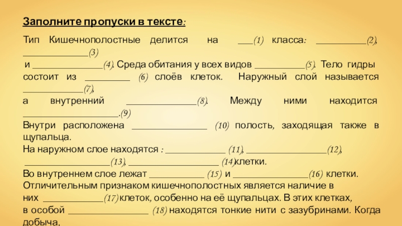 Слайд 19Заполните пропуски в тексте: