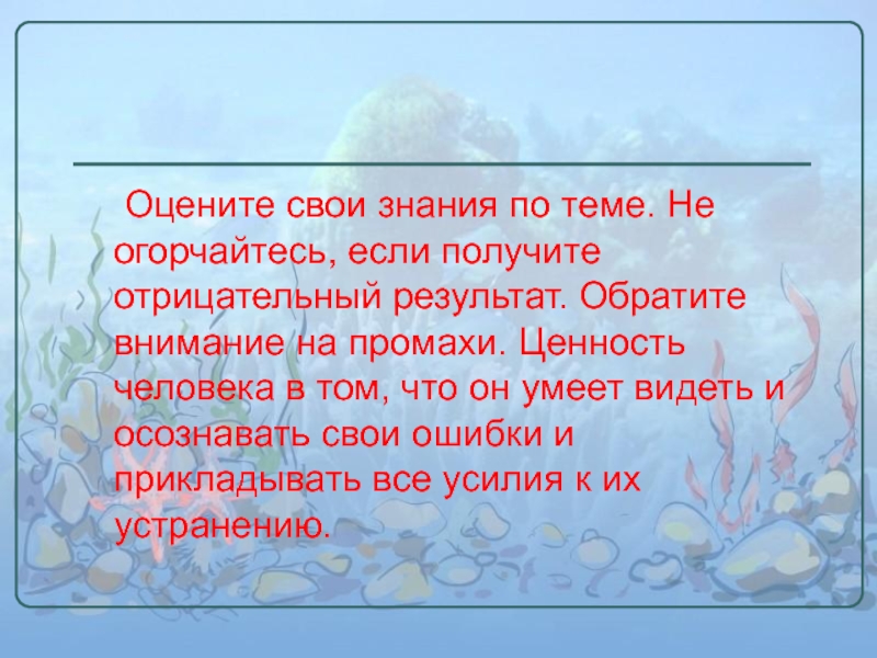 Слайд 39 Оцените свои знания по теме. Не огорчайтесь, если получите отрицательный результат.