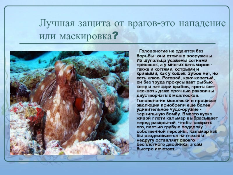 Слайд 11Лучшая защита от врагов-это нападение или маскировка?