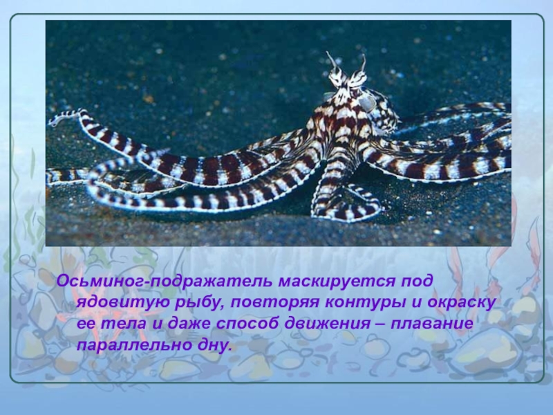 Осьминог-подражатель маскируется под ядовитую рыбу, повторяя контуры и окраску ее