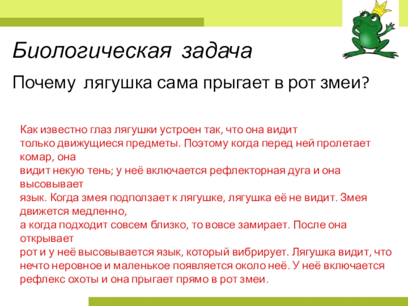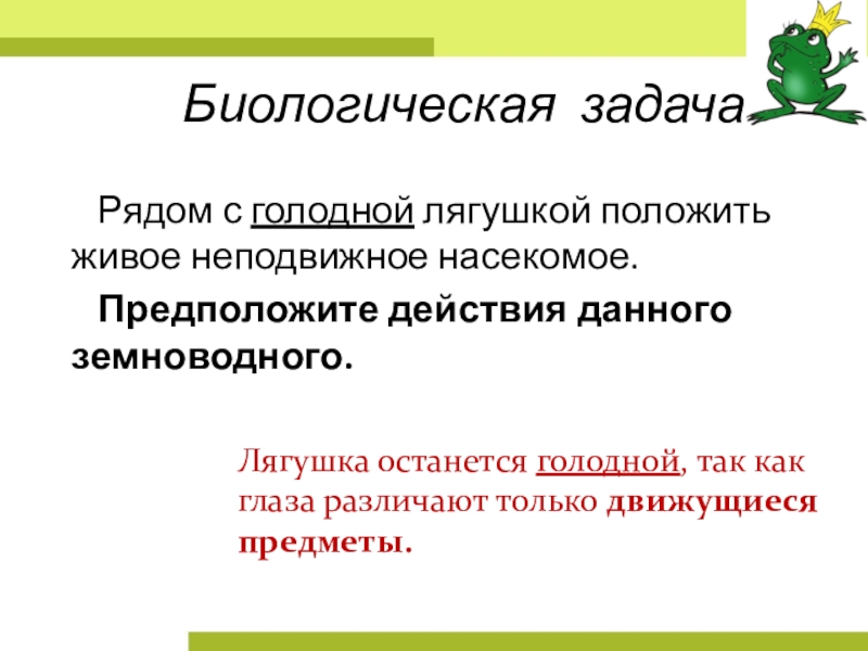 Лягушка останется голодной, так как глаза различают только движущиеся предметы.