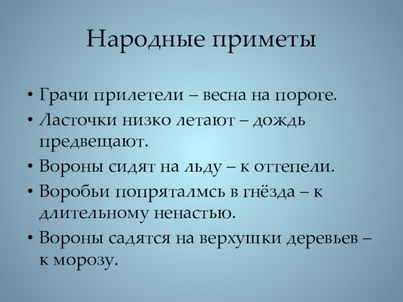 Воробьи попряталмсь в гнёзда – к длительному ненастью.