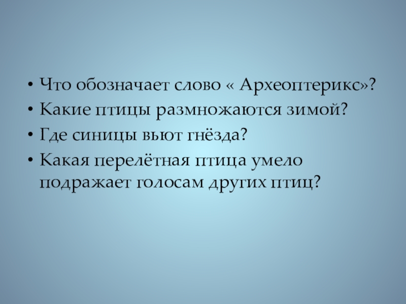 Слайд 14Что обозначает слово « Археоптерикс»?