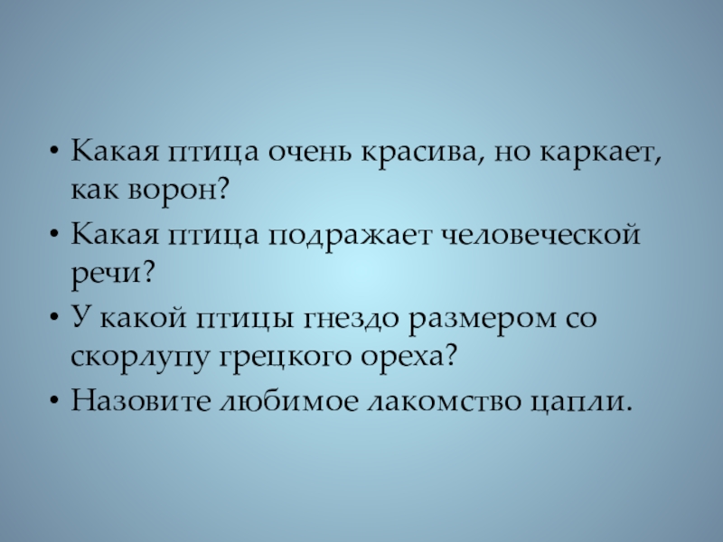 Слайд 6Какая птица очень красива, но каркает,как ворон?