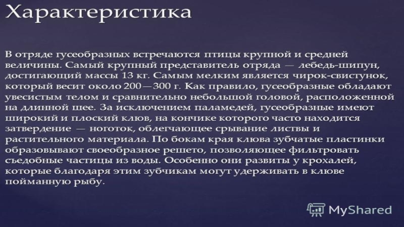 Презентация, доклад по биологии на тему: Класс Птиц. Гусеобразные. - 7 класс