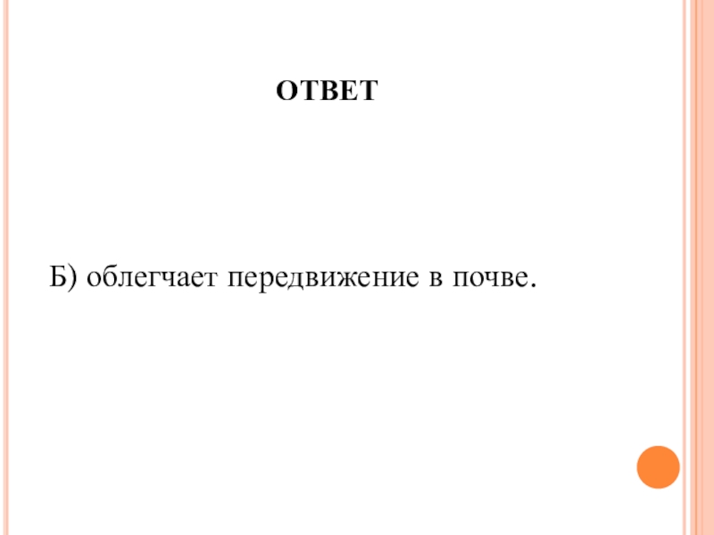 ОТВЕТБ) облегчает передвижение в почве.
