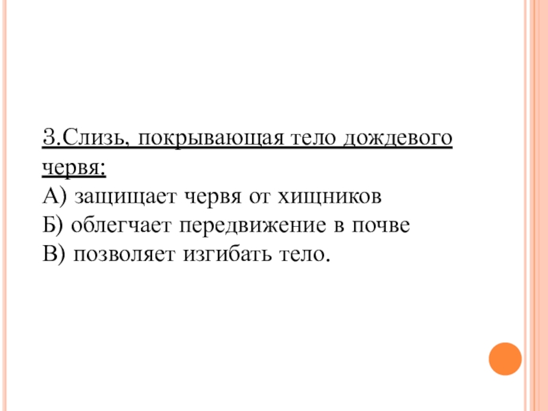 Слайд 103.Слизь, покрывающая тело дождевого червя: