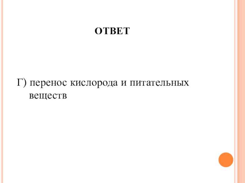 ОТВЕТГ) перенос кислорода и питательных   веществ