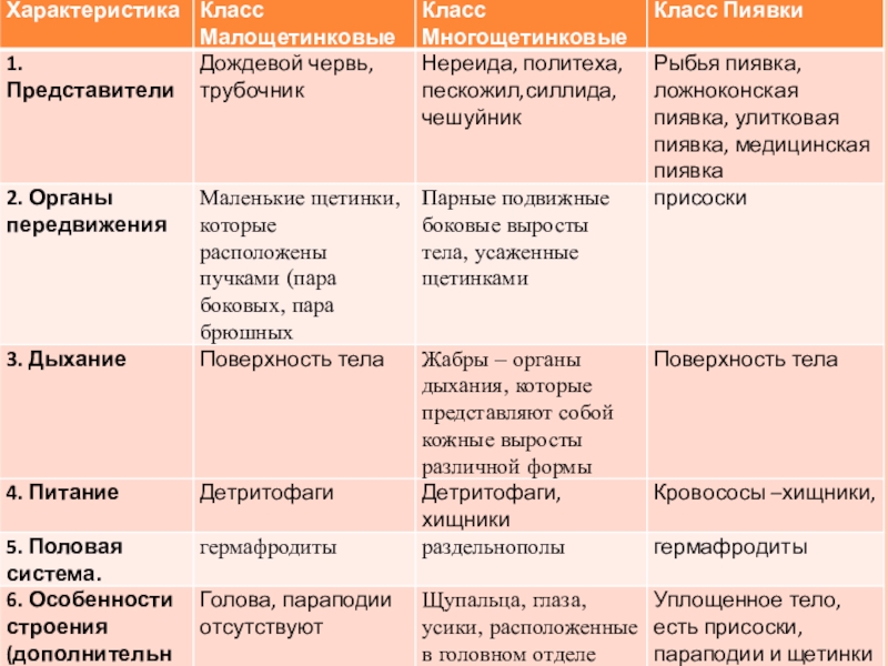 ПРЕДСТАВИТЕЛИМорские кольчатые червиПиявкаДождевой червь