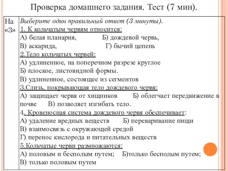 Слайд 4Проверка домашнего задания. Тест (7 мин).