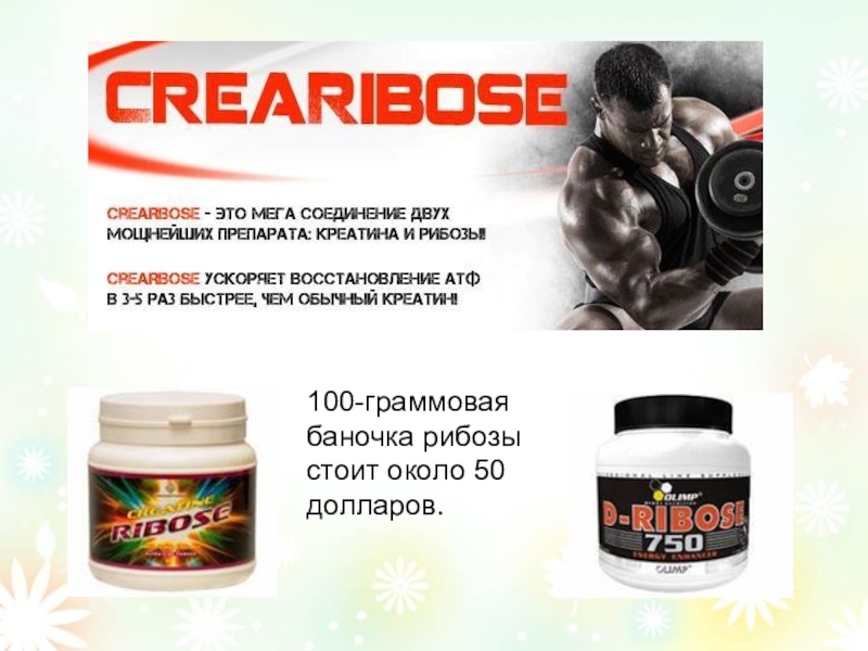 Слайд 7100-граммовая баночка рибозы стоит около 50 долларов.