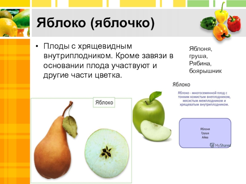 Яблоко!!! Совсем не поворачивается язык назвать его ягодой? Несмотря на наличие сладкой мякоти и множества семян? Зря вы так. (Яблоки, с точки зрения ботаники, растут не только на яблоне, но и на груше, и на рябине.)