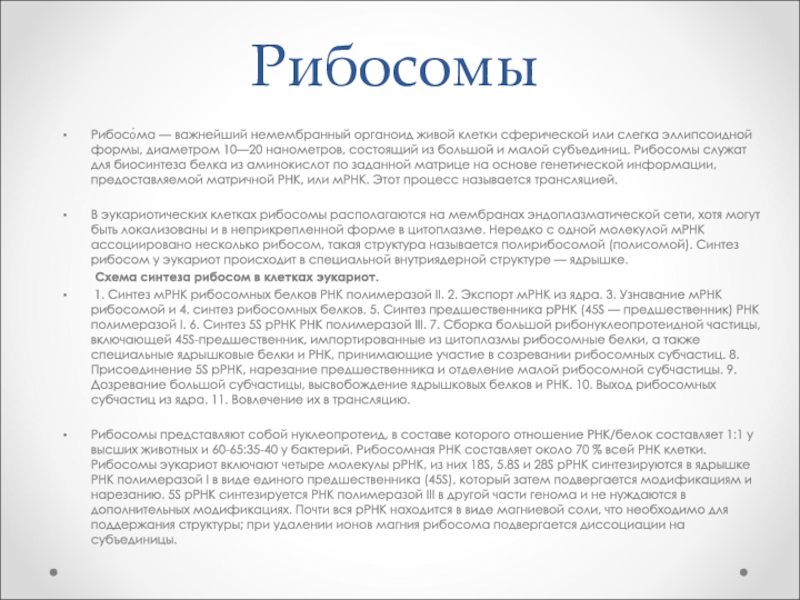 Рибосо́ма — важнейший немембранный органоид живой клетки сферической или слегка эллипсоидной