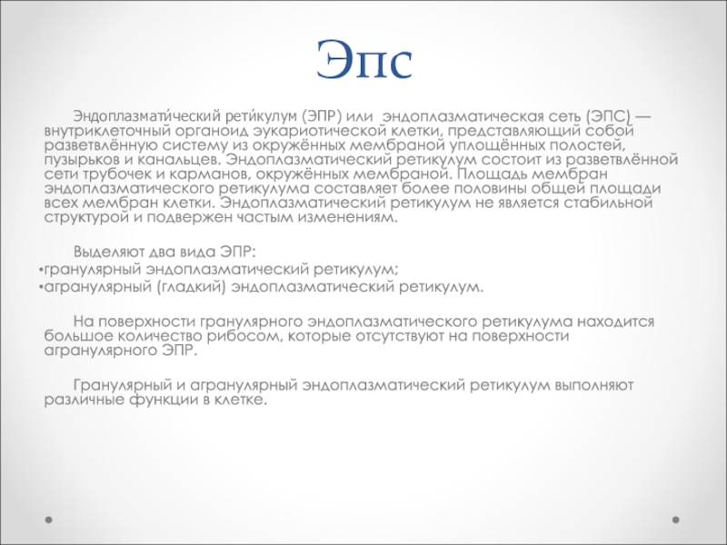 Эндоплазмати́ческий рети́кулум (ЭПР) или эндоплазматическая сеть (ЭПС)