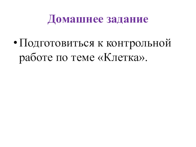 Домашнее заданиеПодготовиться к контрольной работе по теме «Клетка».