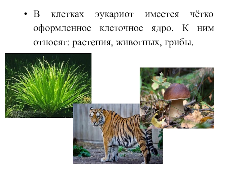Слайд 19В клетках эукариот имеется чётко оформленное клеточное ядро. К ним относят: