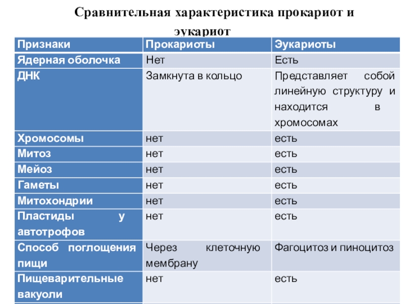 Слайд 20 Сравнительная характеристика прокариот и эукариот