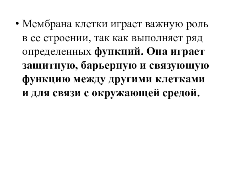 ряд определенных функций. Она играет защитную, барьерную и связующую функцию между другими клетками и для связи с окружающей средой.
