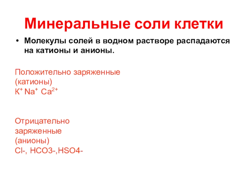 Слайд 30Минеральные соли клетки