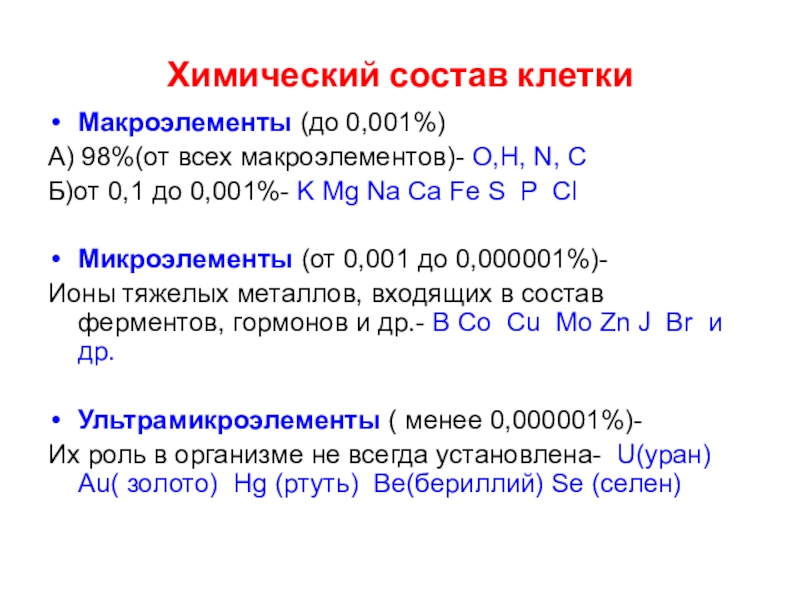 Ультрамикроэлементы ( менее 0,000001%)-